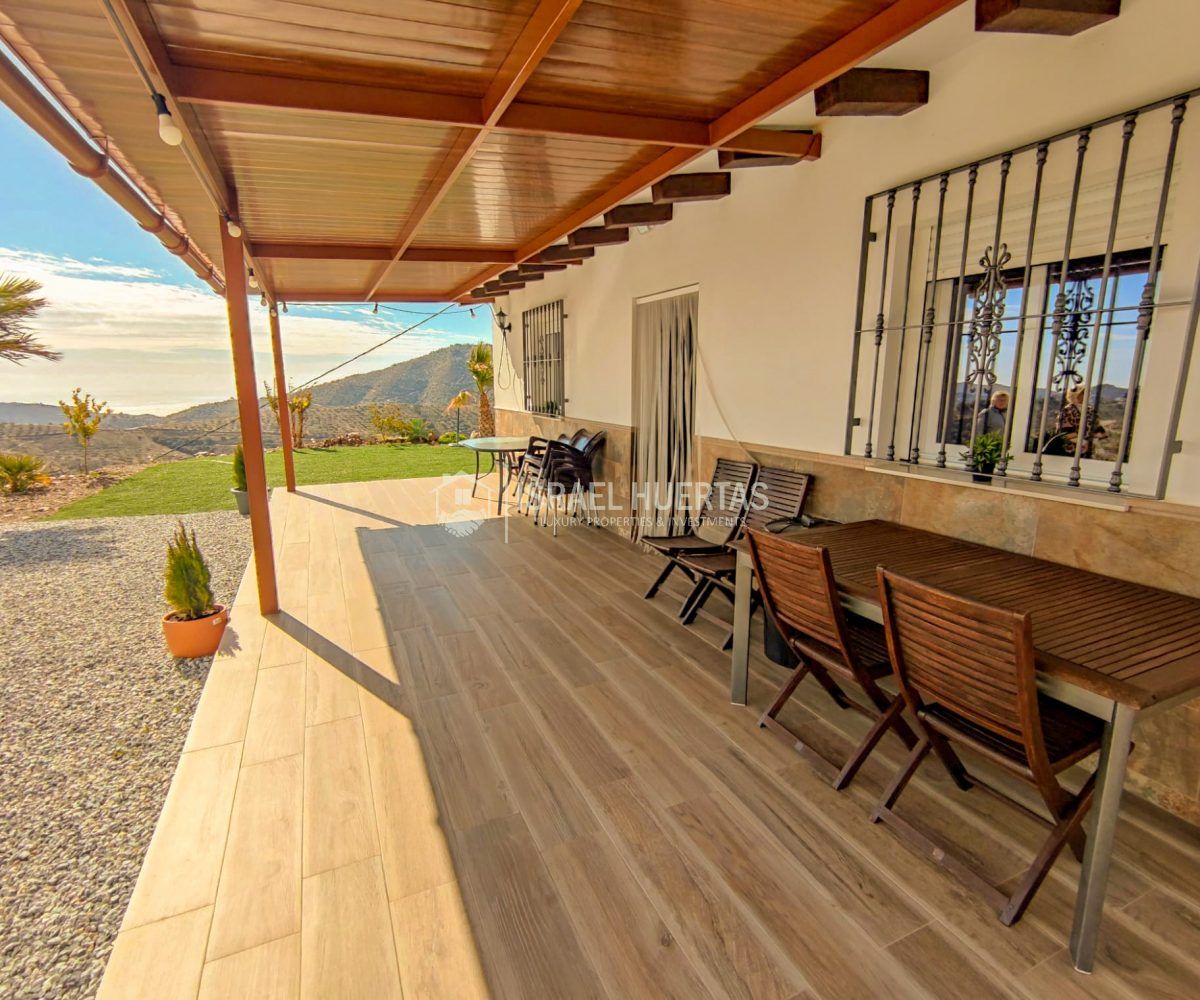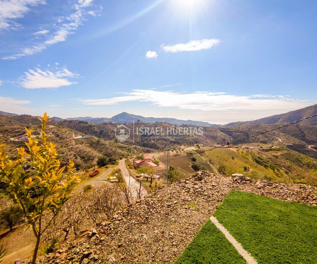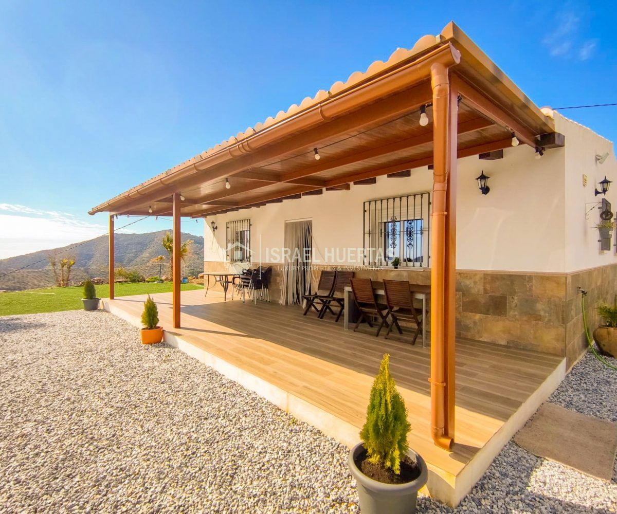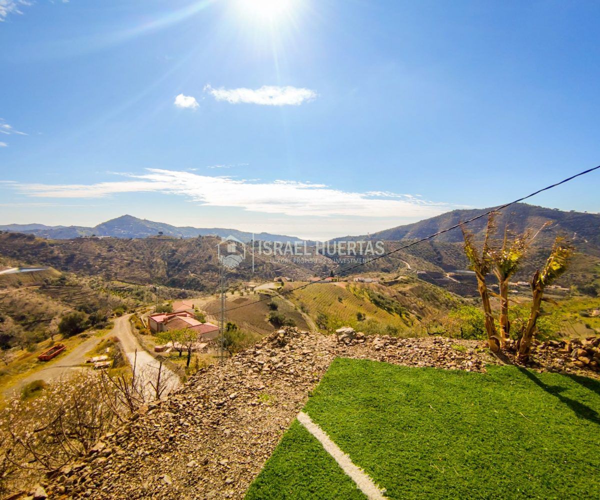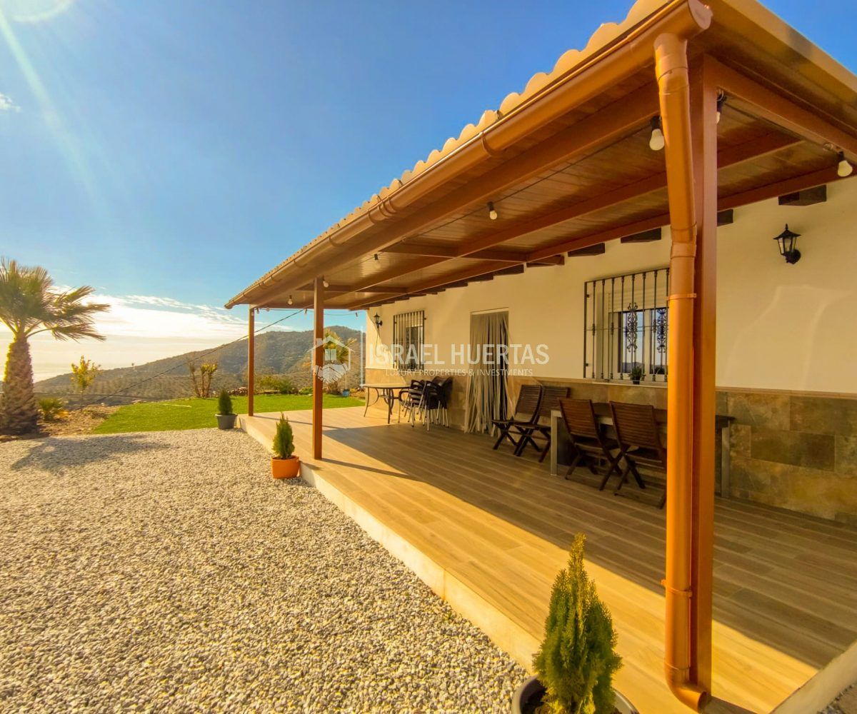 Gran casa de 3 dormitorios y 2 baños, Cocina completa, Aire acondicionado, Calefacción y Chimenea leña, emplazada en una colina con preciosas vistas. Con carril bastante decente y a solo 25 minutos de Vélez Málaga.