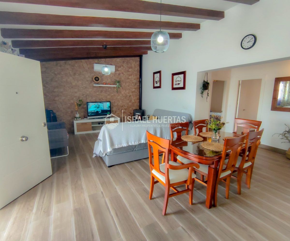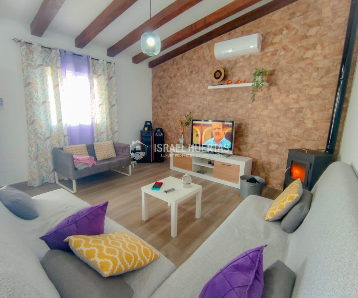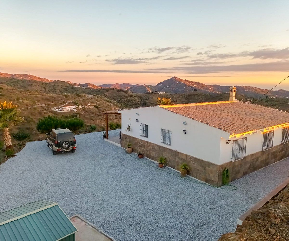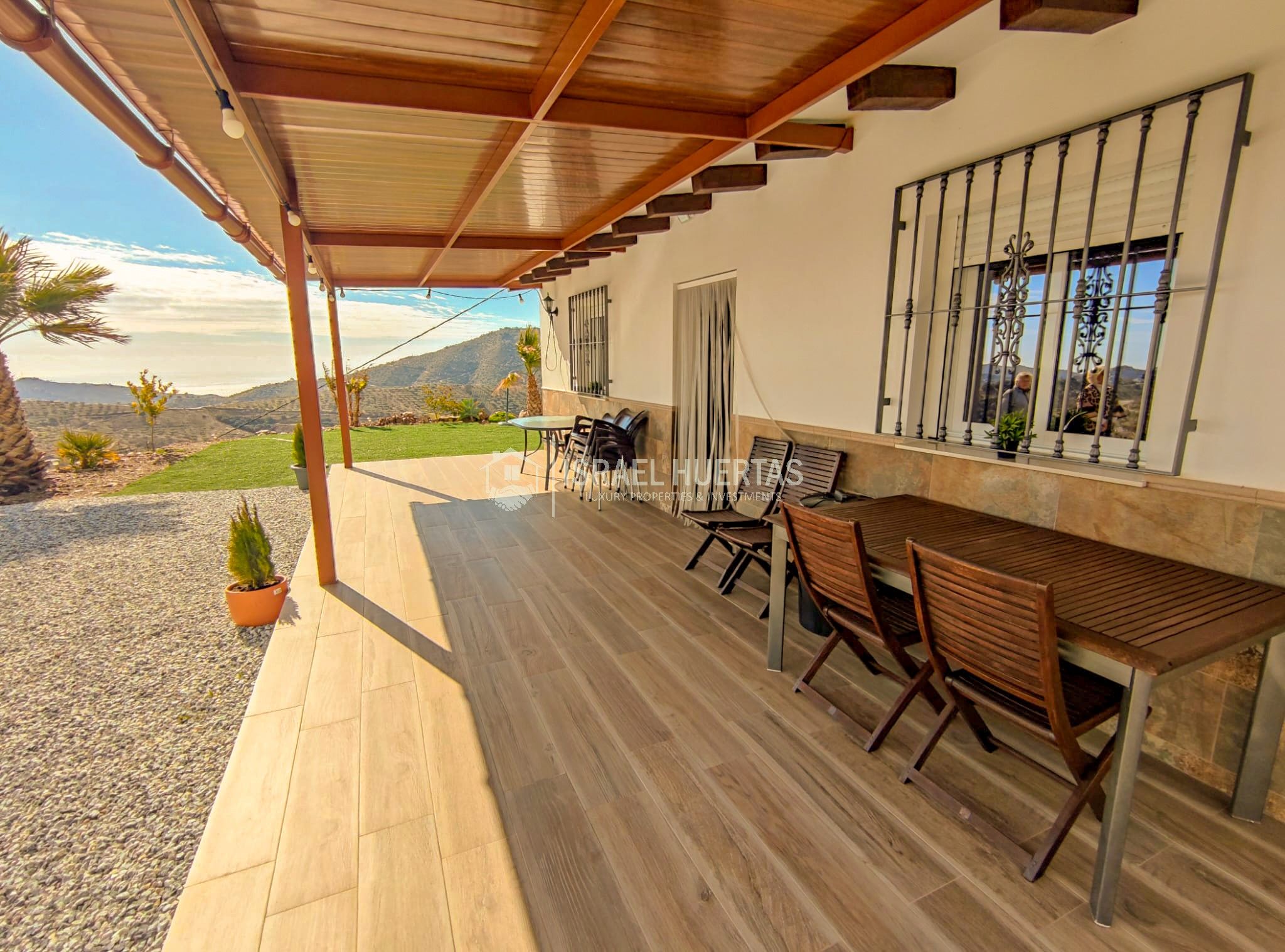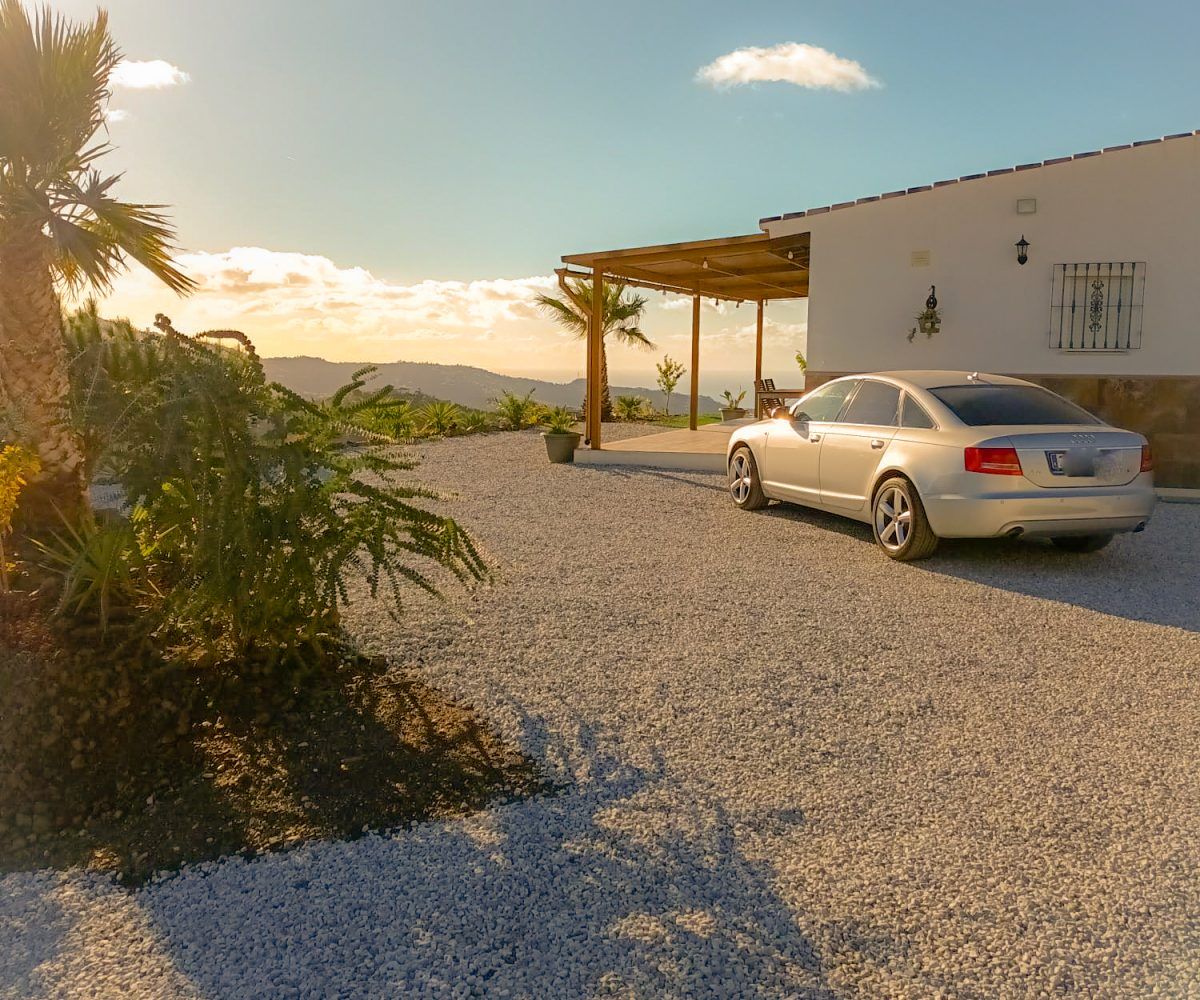 Gran casa de 3 dormitorios y 2 baños, Cocina completa, Aire acondicionado, Calefacción y Chimenea leña, emplazada en una colina con preciosas vistas. Con carril bastante decente y a solo 25 minutos de Vélez Málaga.