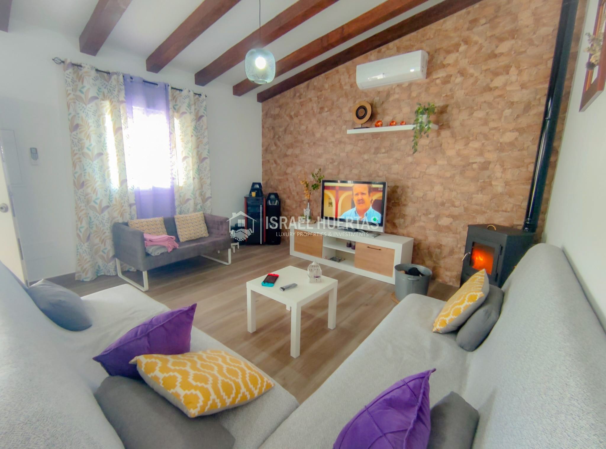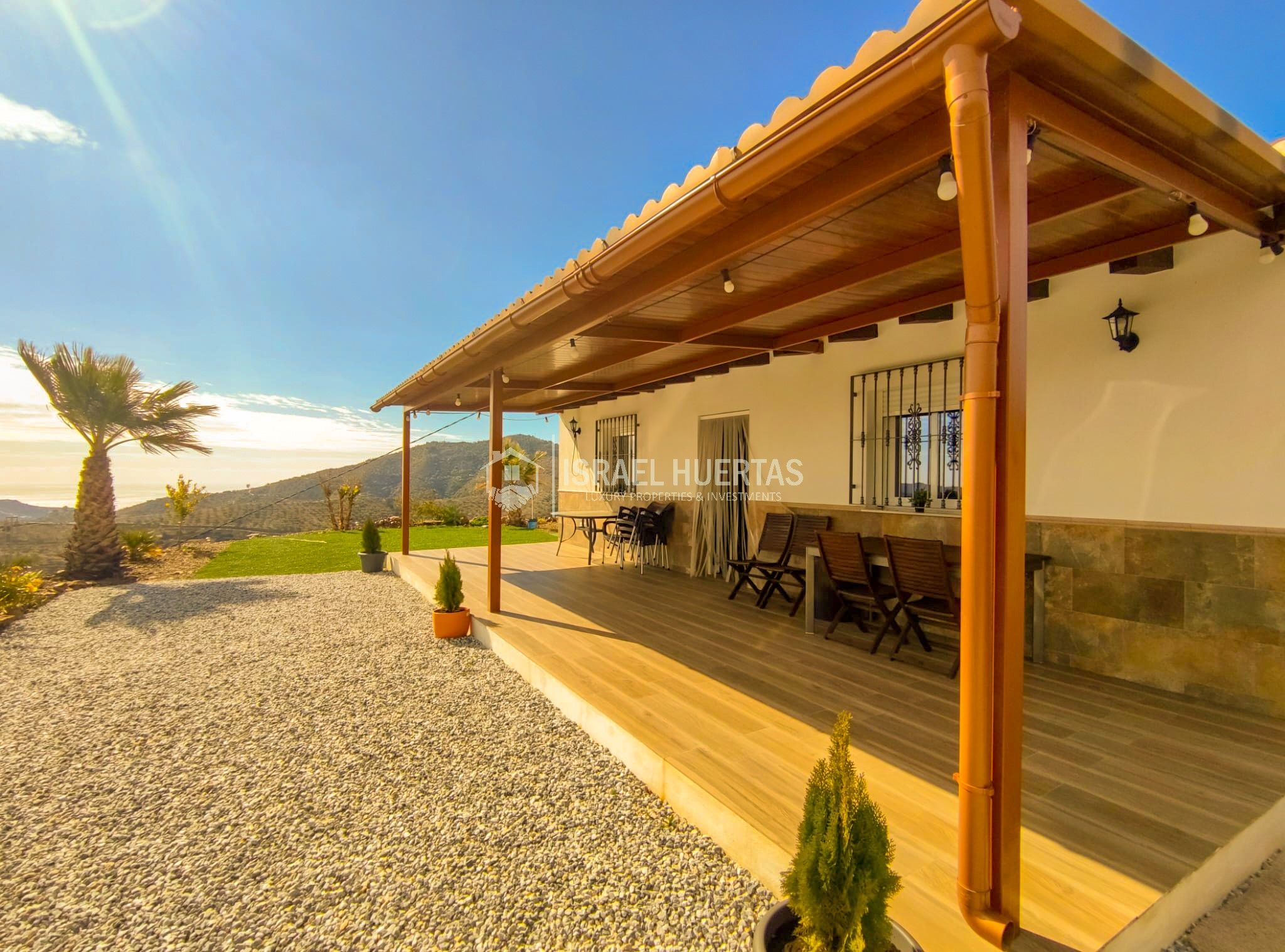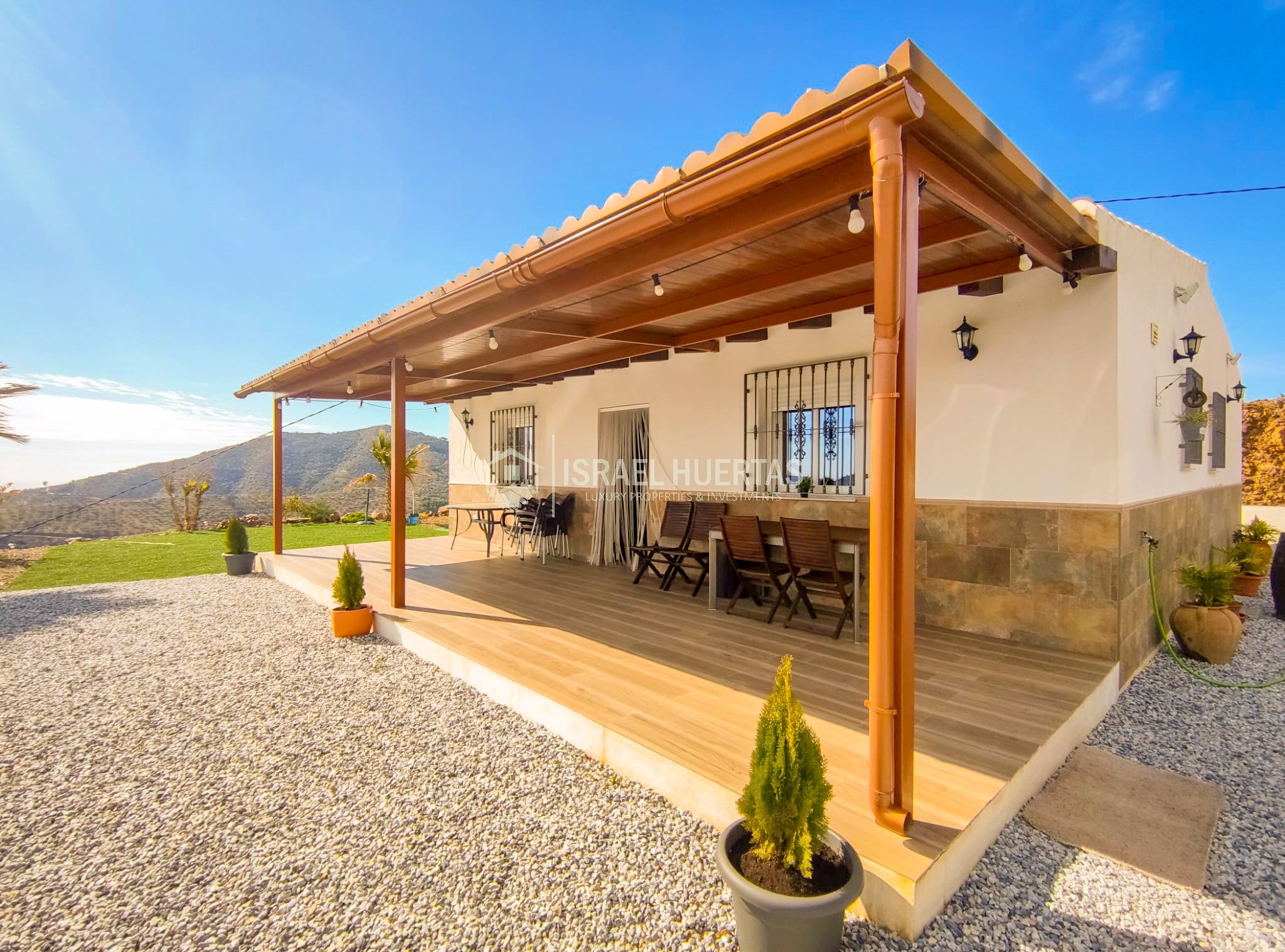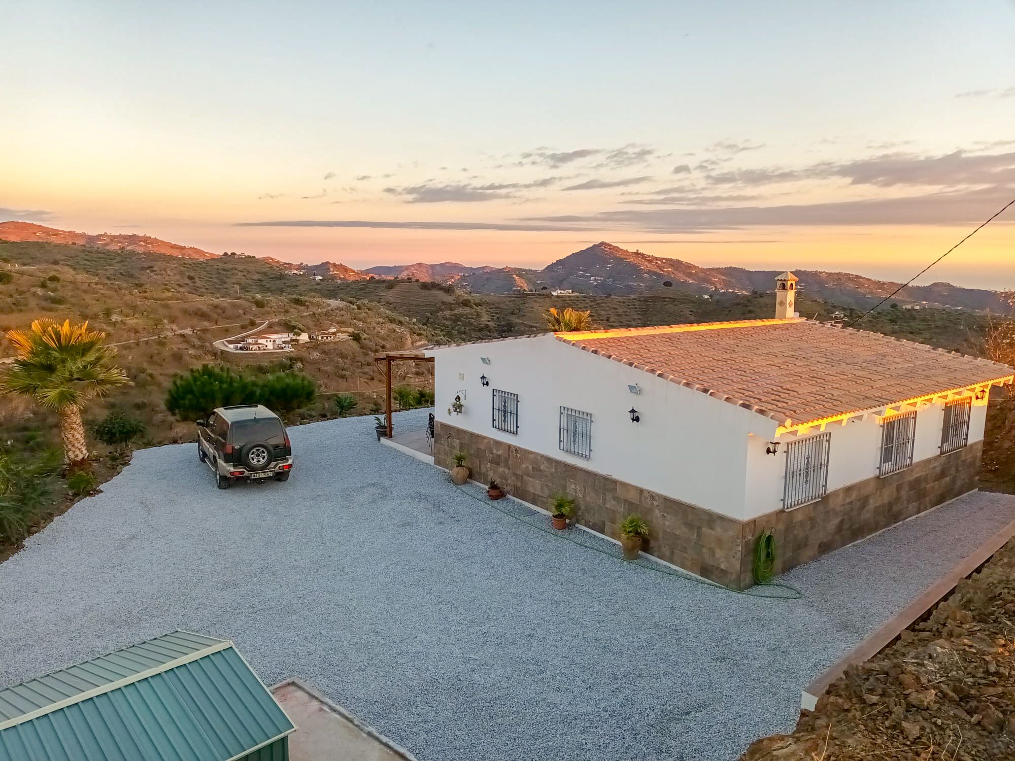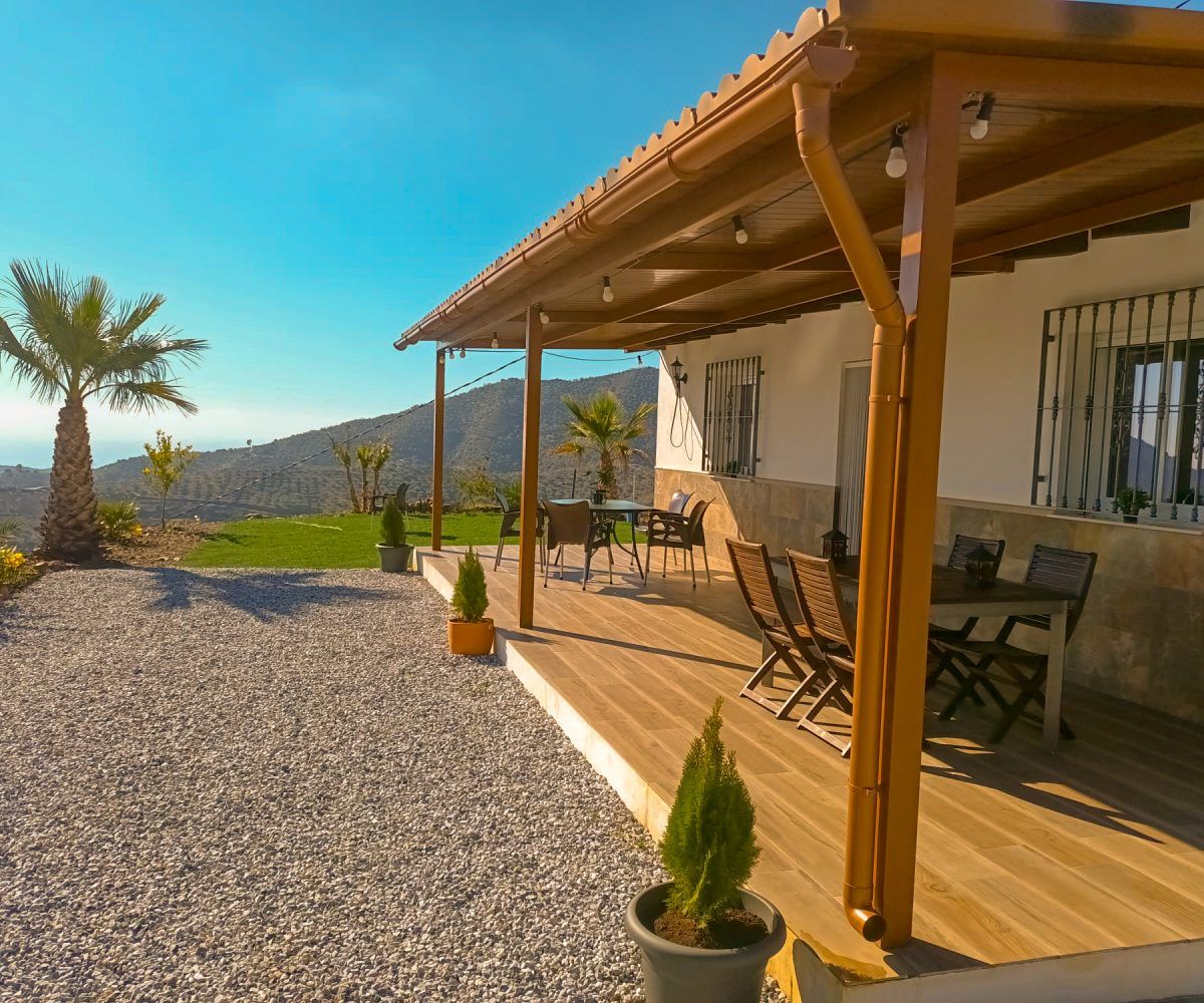 Gran casa de 3 dormitorios y 2 baños, Cocina completa, Aire acondicionado, Calefacción y Chimenea leña, emplazada en una colina con preciosas vistas. Con carril bastante decente y a solo 25 minutos de Vélez Málaga.